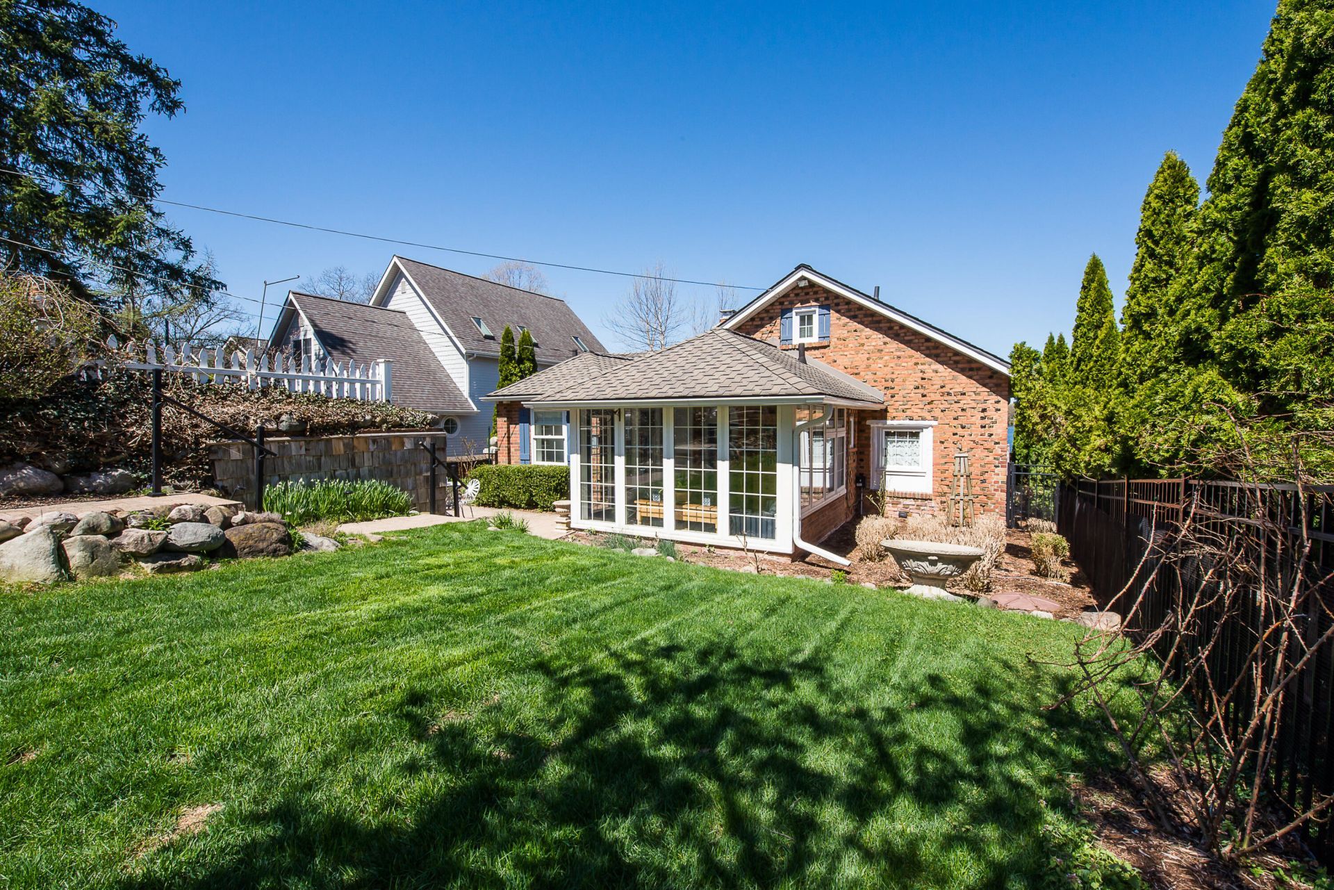 Welcome to 13756 Rustic Dr., an exceptional offering on highly coveted all-sports North Lake. This enchanting Cotswold-inspired cottage is rich in character and architectural charm, featuring a striking stone fireplace, rare clinker brick exterior, and a light-filled three-season entry with vaulted ceilings. Originally built in 1925, the home has been thoughtfully renovated and impeccably maintained, blending historic charm with modern comfort. Recent updates include a beautifully renovated first-floor bath and updated laundry area. Positioned to capture stunning sunset views, the property offers effortless indoor-outdoor living with a low-maintenance Trex deck and a winding path leading to your private beach and dock. Set on a rare double lot, the grounds feature a fenced yard, charming rose garden, manicured beds, and ample parking. A newly constructed three-car garage on the second lot includes a spacious loft, ideal for storage or future finished living space. A rare opportunity to own a timeless, character-rich lakefront retreat in a premier setting.Parcel #D-04-18-431-004 included in sale.